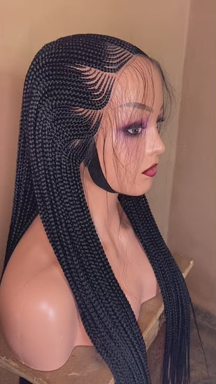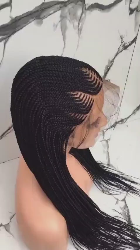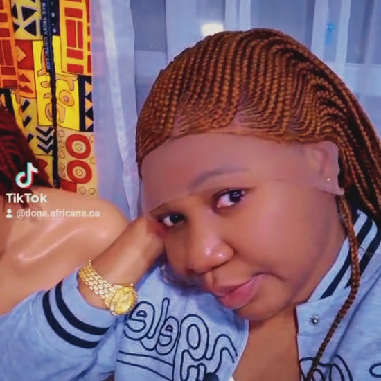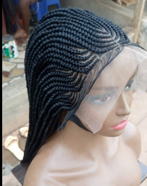 ll s'agit d'une jolie perruque tressée en passe mèche, 100% faite à la main.