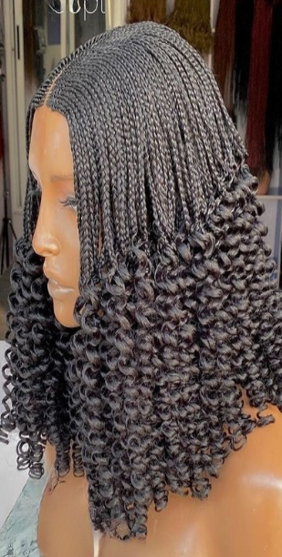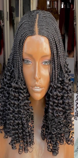coiffure africaine élégante offrant un rendu net, structuré et soigné, tout en protégeant les cheveux naturels. de couleur noir bouclé aux bouts
