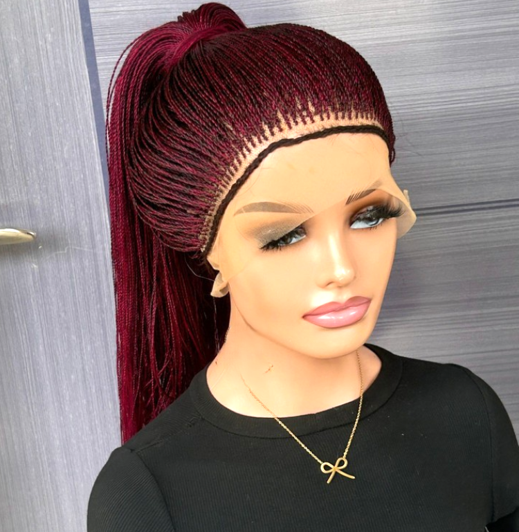 Entièrement faite à la main, cette perruque présente des tresses fines et naturelles, assurant un rendu réaliste et confortable.
